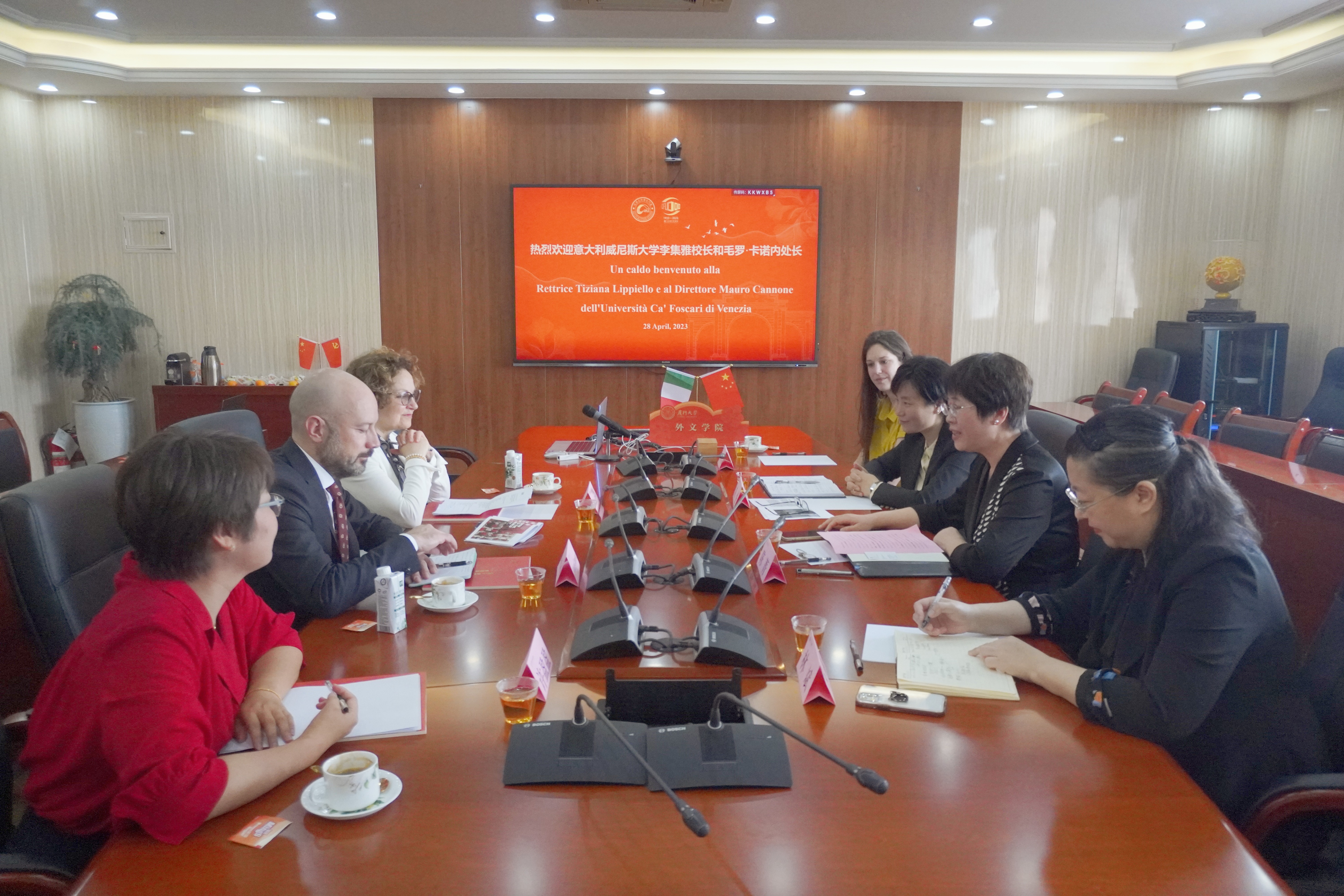 4月28日上午,意大利威尼斯大学校长李集雅(Tiziana Lippiello)、国际处处长马彦龙(Mauro Cannone)来访我院并展开合作交流。学院院长陈菁、副院长刘悦、英语系副主任林斌、意大利语专任教师许盈盈、意大利籍博士后陆朵(Lena Ludovica)等参与座谈。