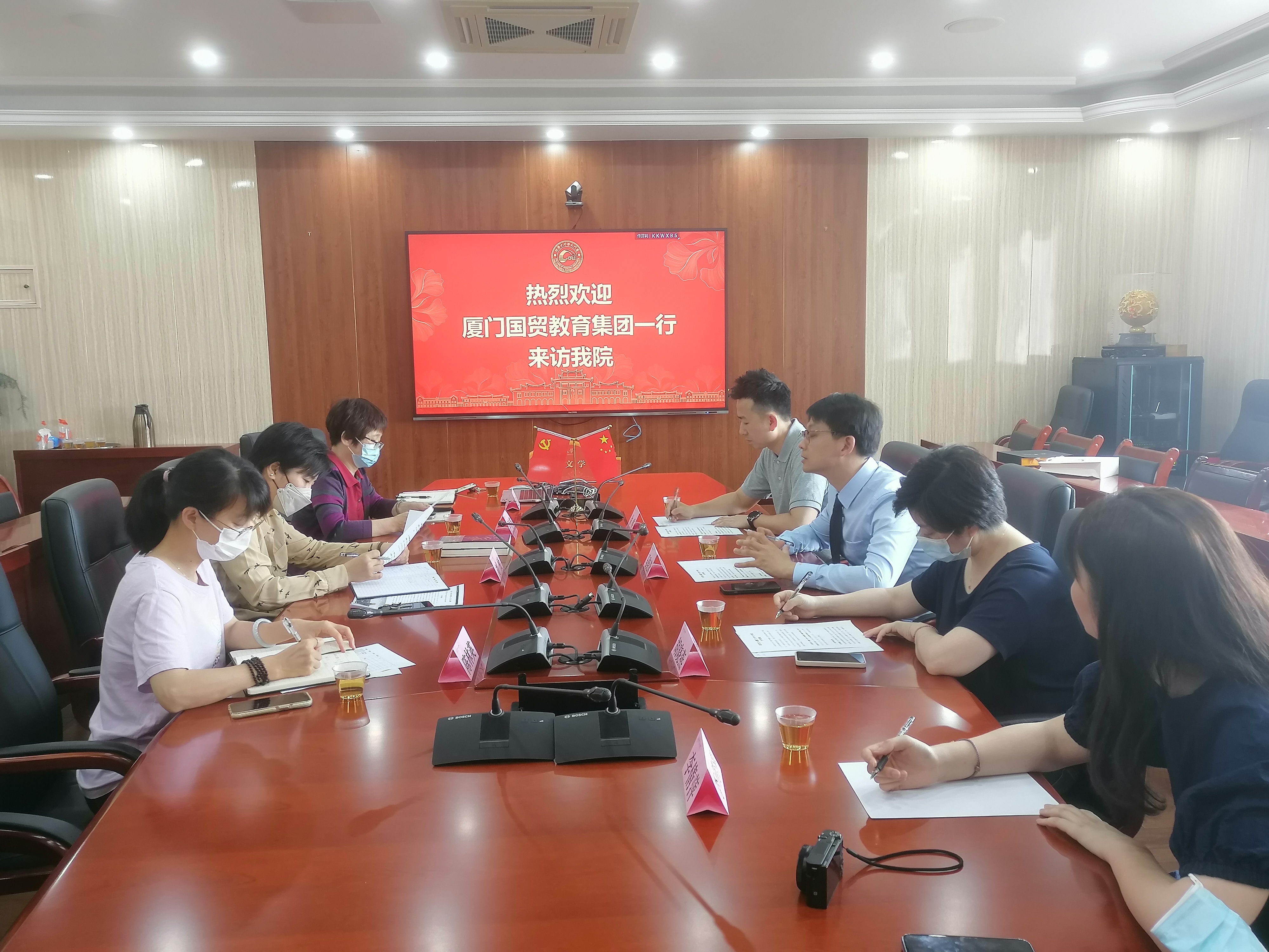 5月26日上午,厦门国贸优才教育咨询有限公司副总经理胡晓燕、徐睿,厦门中英枫禾中学校长马潇骁及其市场招生部负责人李倩萍来访我院,副院长刘悦等参与交流,双方就如何推进合作展开座谈。
