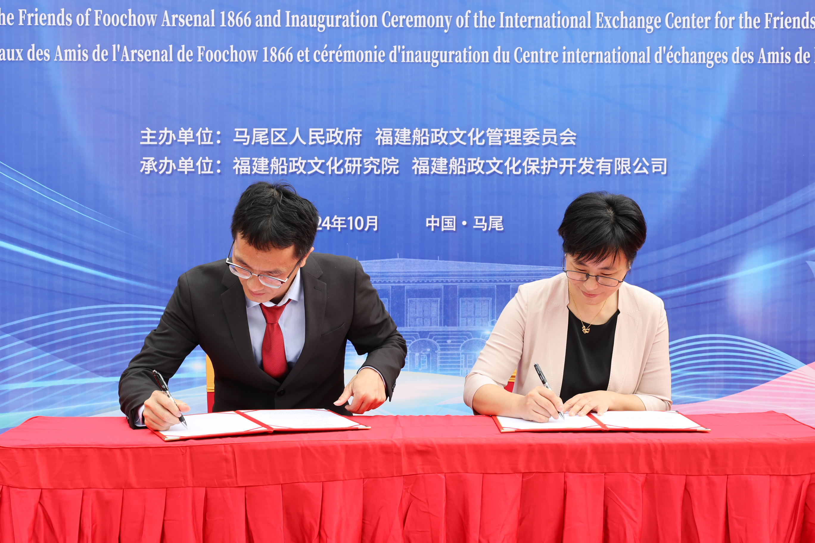 中心负责人刘悦和福建船政文化管委会副主任杨明新分别代表厦门大学文明交流互鉴研究中心和福建船政文化研究院签署合作备忘录。