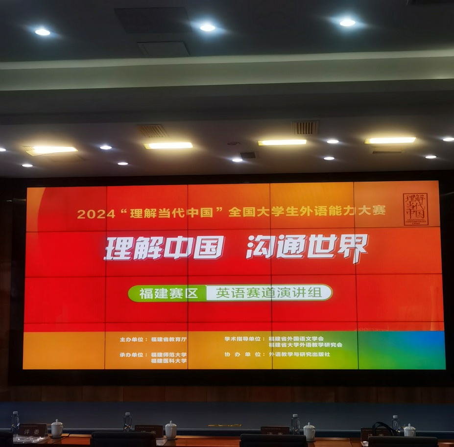 11月2至3日,2024“理解当代中国”全国大学生外语能力大赛福建赛区英语赛道比赛在福建医科大学举行。本次大赛由福建省教育厅主办,福建师范大学和福建医科大学承办,外语教学与研究出版社协办,福建省外国语文学会、福建省大学外语教学研究会作学术指导,旨在深入贯彻党的二十大精神,落实立德树人根本任务,纵深推进习近平新时代中国特色社会主义思想,深化高校外语教育改革、提高外语人才自主培养质量,培养高水平国际传播人才。
