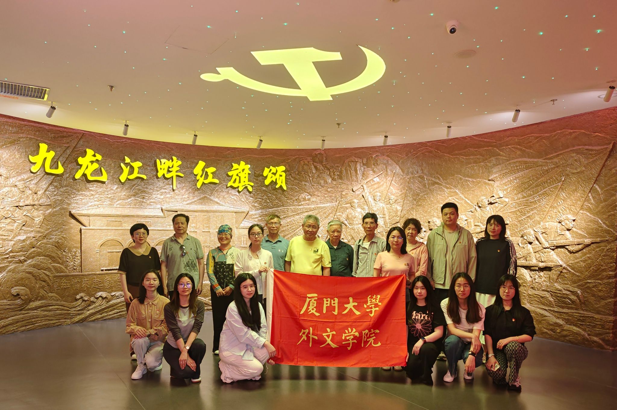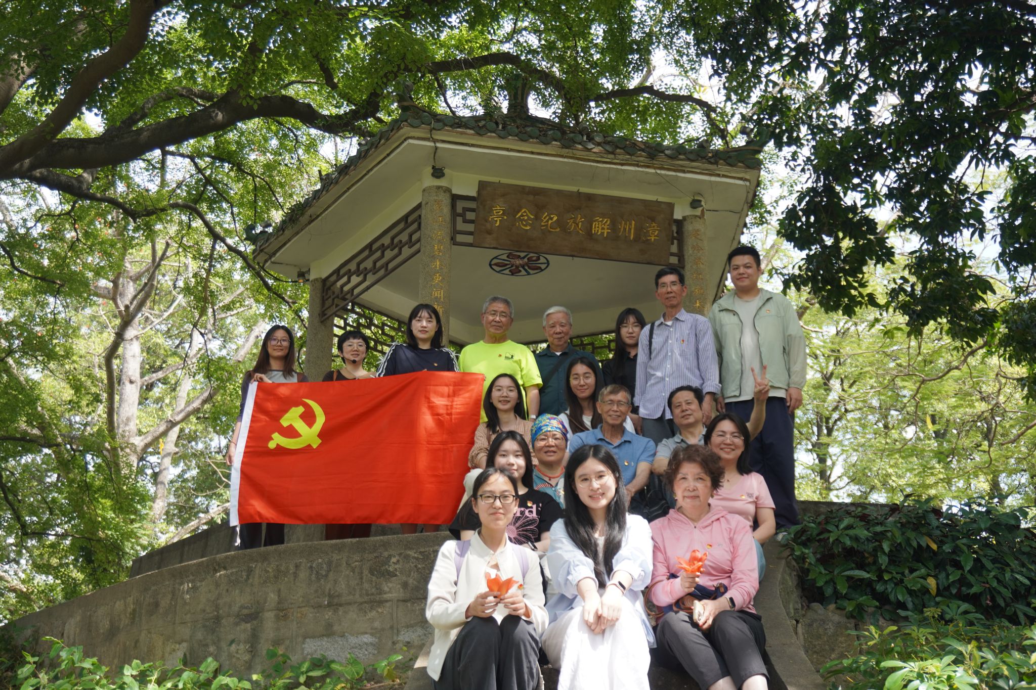 为进一步巩固拓展学习贯彻习近平新时代中国特色社会主义思想主题教育成果,扎实推进深入贯彻中央八项规定精神学习教育,推进厦门大学离退休教职工“六好”示范党支部建设,充分发挥退休党员“红色导师”作用,4月17日,外文学院党委赴漳州开展“银青联学传薪火 固本培元扬新风”实践教学活动。学院党委副书记罗俊峰带队,学院关工委常务副主任陈端端,以及退休党员、青年教工党员和学生党员代表19人参加活动。