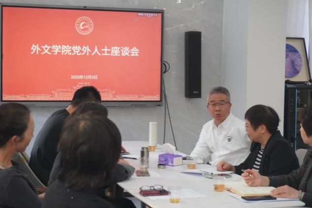 为深入学习贯彻党的二十届四中全会精神,凝聚党外人士智慧力量,共谋学院 “十五五” 时期高质量发展,12月3日,外文学院在德贞楼“外文之家”召开2025年度党外人士座谈会,学院党委书记徐琪主持会议,学院各民主党派、党外知识分子代表参加会议。